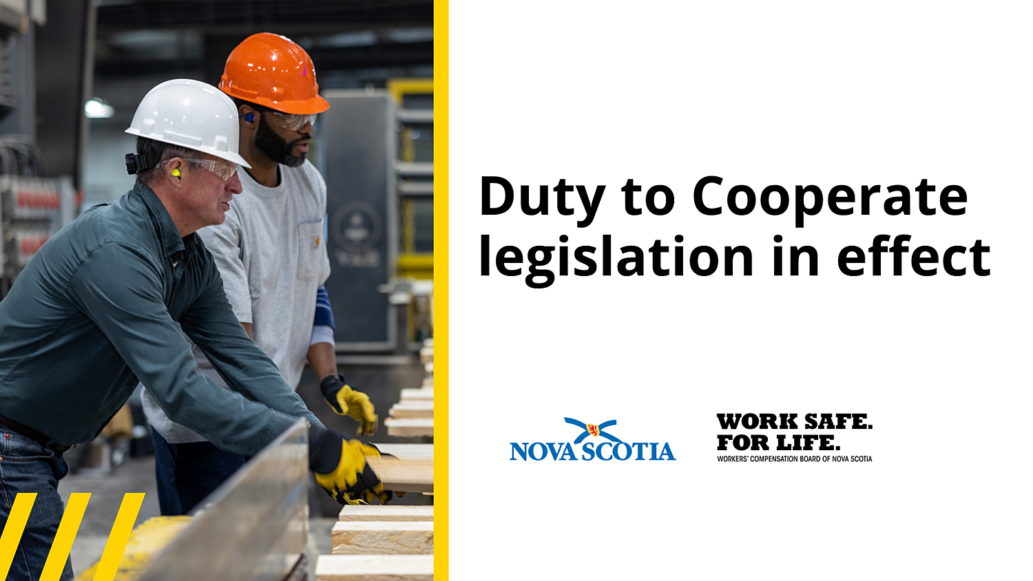 As of today, July 15, Nova Scotia’s new Duty to Cooperate legislation is in effect. This change means that workers injured on the job – and their employers – must now actively work together with WCB to support a safe and timely return to work.