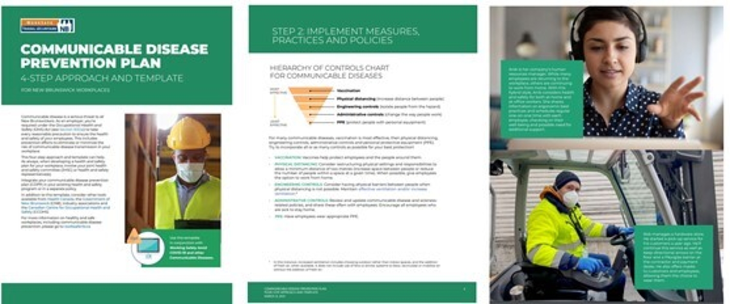 To help, WorkSafeNB has developed Working Safely Amid COVID-19 and other Communicable Diseases and an accompanying four-step approach and template for developing a communicable disease prevention plan.